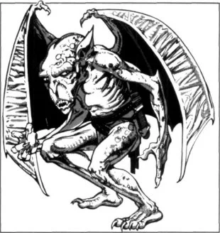 This odd creature looks like a gangly imp with leathery skin and bat wings. Its eyes are very watery and white, capable of seeing deep into the darkness. They are bipedal humanoid-ish creatures, though their heads are rather oblong and their hands end in wicked claws. There isn’t much else we can tell you about these creatures, besides they look gaunt and in need of food. Since they basically only eat once a month, we suppose we can understand how they keep themselves so physically trim.