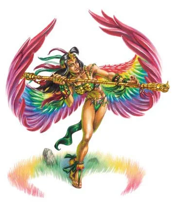 We’ve been going on about how cool the Couatl are with all of their abilities… what if you wanted to be one? Well, you can’t actually play as a Couatl but in 2004 the Complete Divine book is released and with it are a bunch of divine-themed prestige classes. One of those classes is the Rainbow Servant, which means that your character has pilgrimaged to one of the ziggurats hidden away in the deep jungles and have been blessed with divine spellcasting from a Couatl. Adventurers who follow this prestige class gain divine spellcasting abilities to further increase their arcane abilities, grow colorful wings full of feathers, and, the most exciting part of it all, gets a d4 hit die. Alright, maybe that isn’t very exciting but rather painful, but you get wings! Sometimes, you just have to make a few sacrifices.