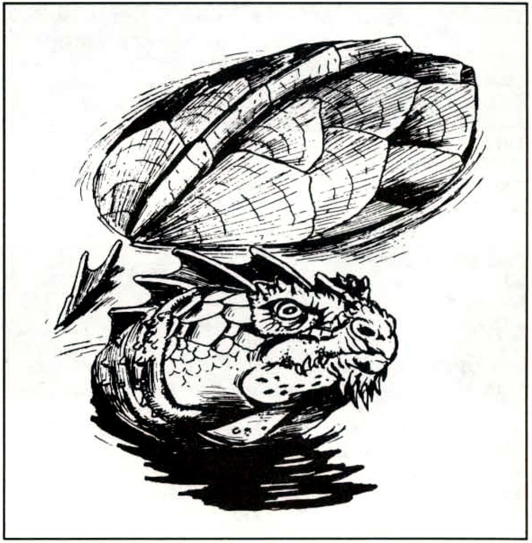 In the 2nd edition Monstrous Compendium Volume One (1989) and later reprinted in the Monstrous Manual (1993), the Dragon Turtle is given the proper respect that it has been due, being called beautiful, fantastic, and feared all in the first sentence. Additional imagery of their splendor continues as many an adventurer has thought that a Dragon Turtle shell of the surface of the water is the reflection of the moon or sun. The shell still holds a deep green color, with silver highlights that have the sun's reflection dancing across the water. Their arms, tails, and head are a lighter green color, and its neck has spiked webbing that runs down the top of it. Also, it now specifies that the Dragon Turtle is an intelligent creature and they even have their own highly developed languages, which is the only language they speak.
