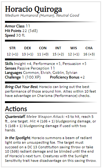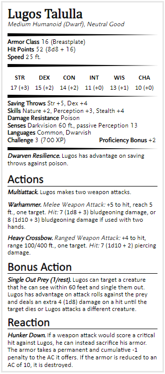 If you liked our NPCs and want a PDF of them, or any of our homebrew, consider supporting us on Patreon! For just $5, you get full access to our vast Homebrew Hoard which includes over 300+ monster statblocks, magic items, spells, and more!
