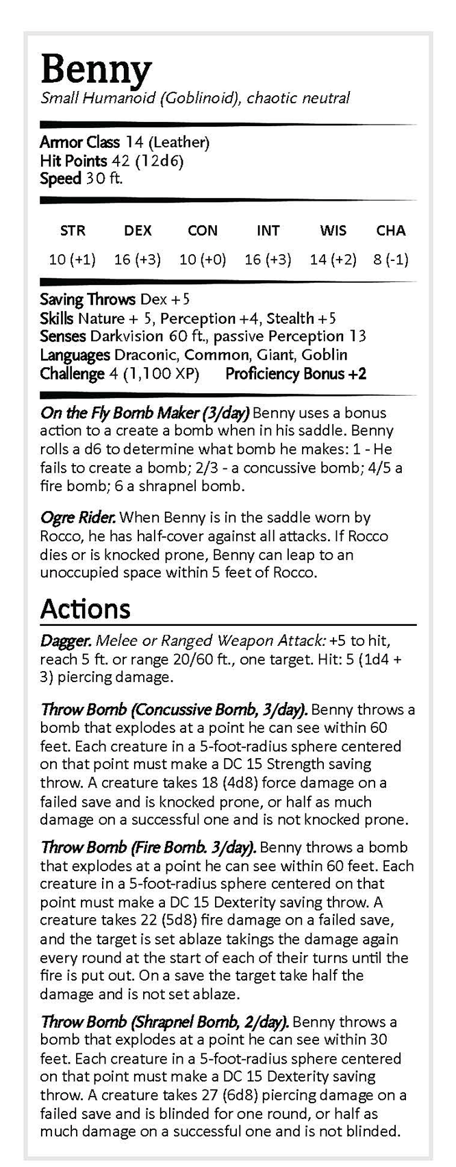 2. A clan of hill giants wants to kill Rocco as they view him as unpure and an insult to their race. Benny is deeply concerned for his best friend, imploring the adventurers to help with this problem.