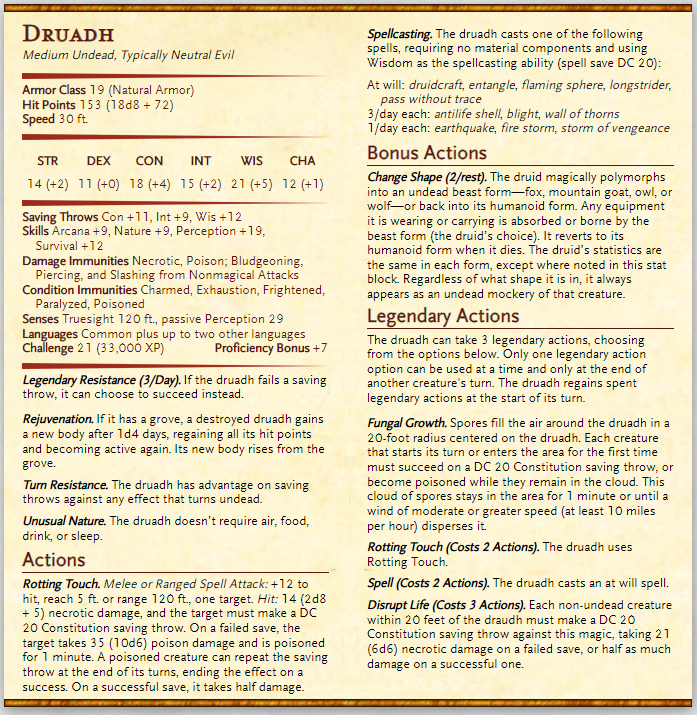 The druadh causes up to four corpses within the grove to rise as skeletons or zombies. They attack any living creature within the grove and have advantage on any saving throw or ability check.