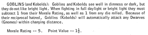 Luckily, I do have a digital copy of Chainmail… don’t tell anyone. So let’s go ahead and see what that looks like for goblins.