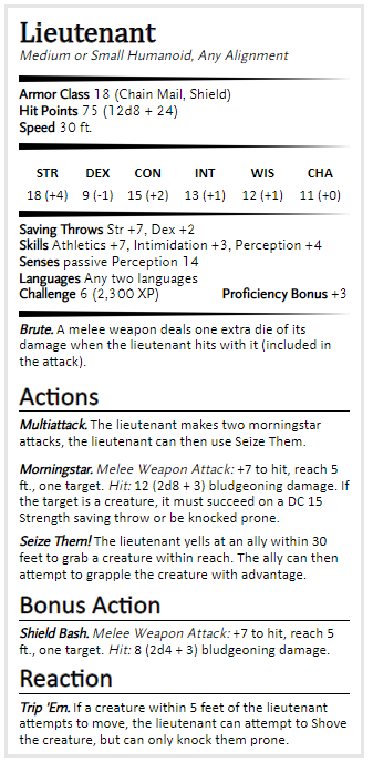Stat Block Lieutenant (below), Gladiator, or Noble