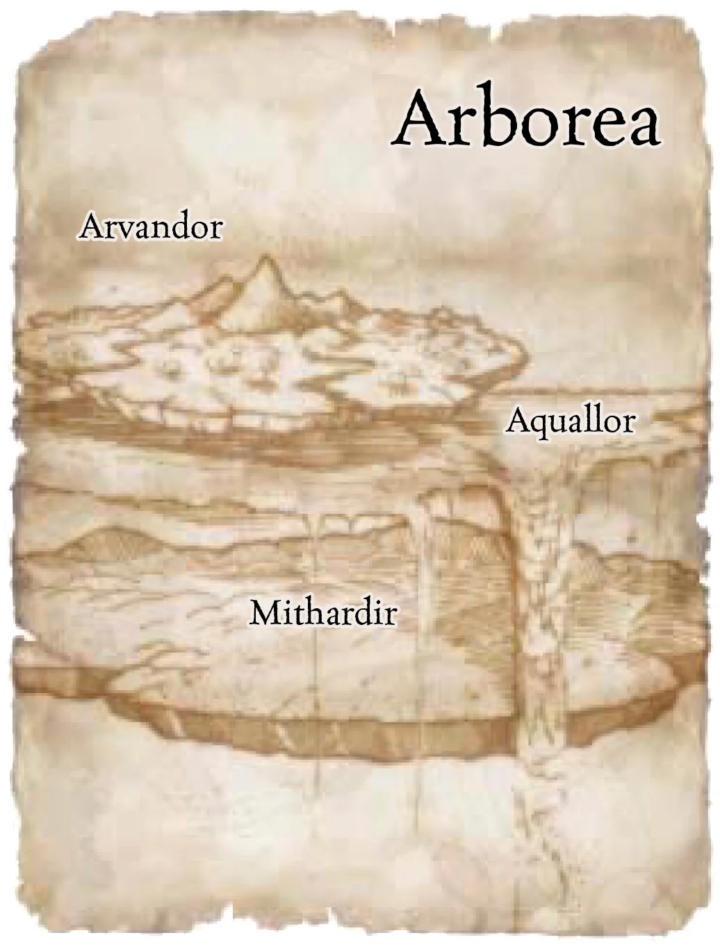 For this article, we will be using the latest published names for each layer; Arvandor, Aquallor, and Mithardir. These are considered the elven names for this plane and, due to the Olympian pantheon largely removed from the plane in 3rd and 4th edition, the elven names are the ones that have made it through the editions.